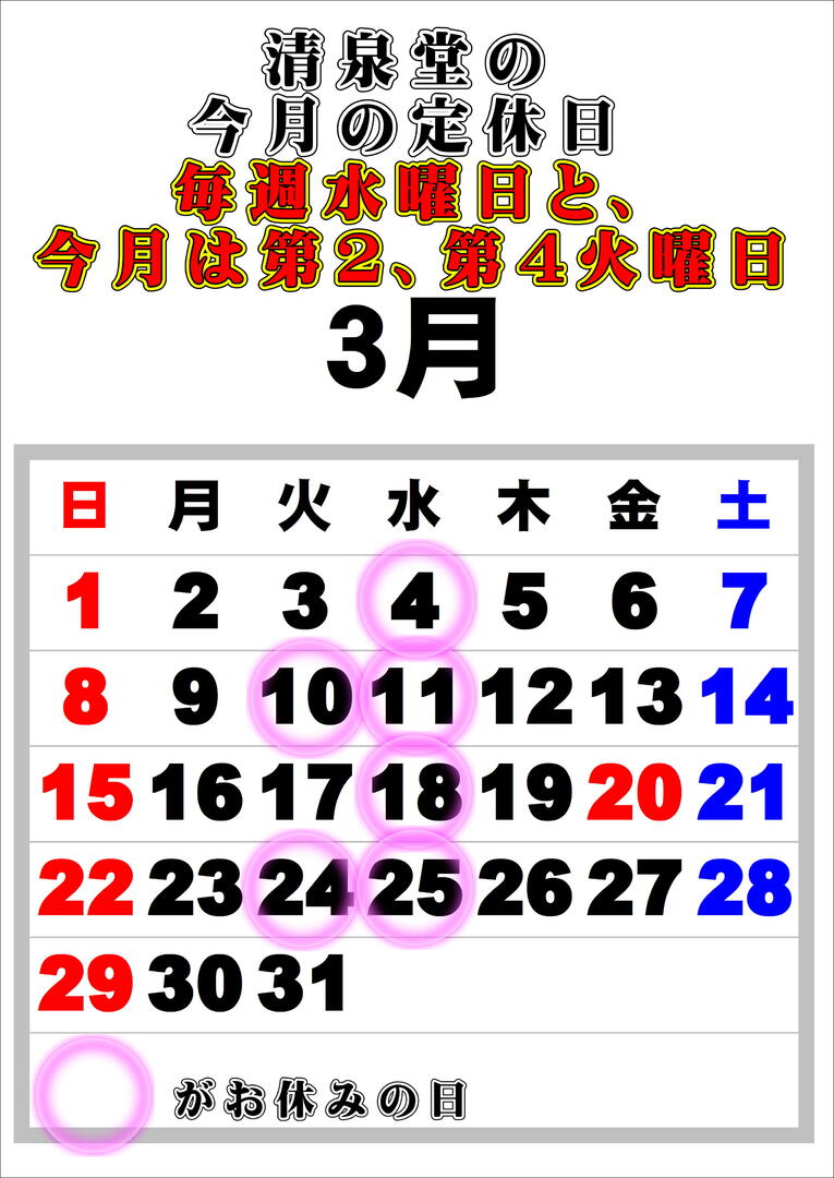 定休日:毎週水曜日